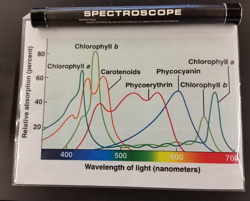 15. What colors should not be visible when you use the spectroscope to examine an extract of chlorophyll from spinach on a chromatographic strip? ______________________________________________________