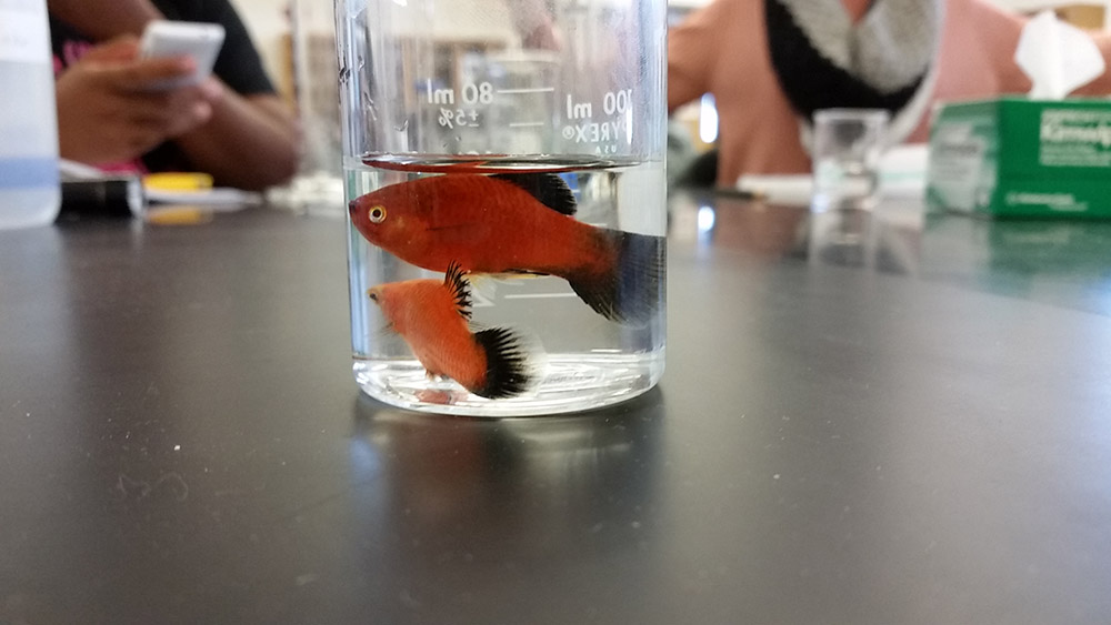 18. The changes in pH in the beaker with the small fishes over time suggest what gas is changing? ________________