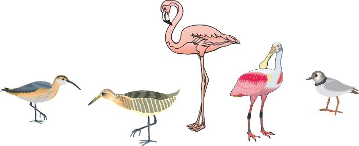 In the natural world, birds such as these shore birds have to be adapted to water depth, background colors and feeding strategy. The feeding strategy is what you have been looking at in the laboratory.