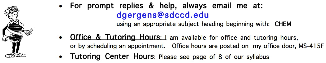 - For prompt replies, always email me at dgergens@sdccd.edu using an appropriate subject heading.
